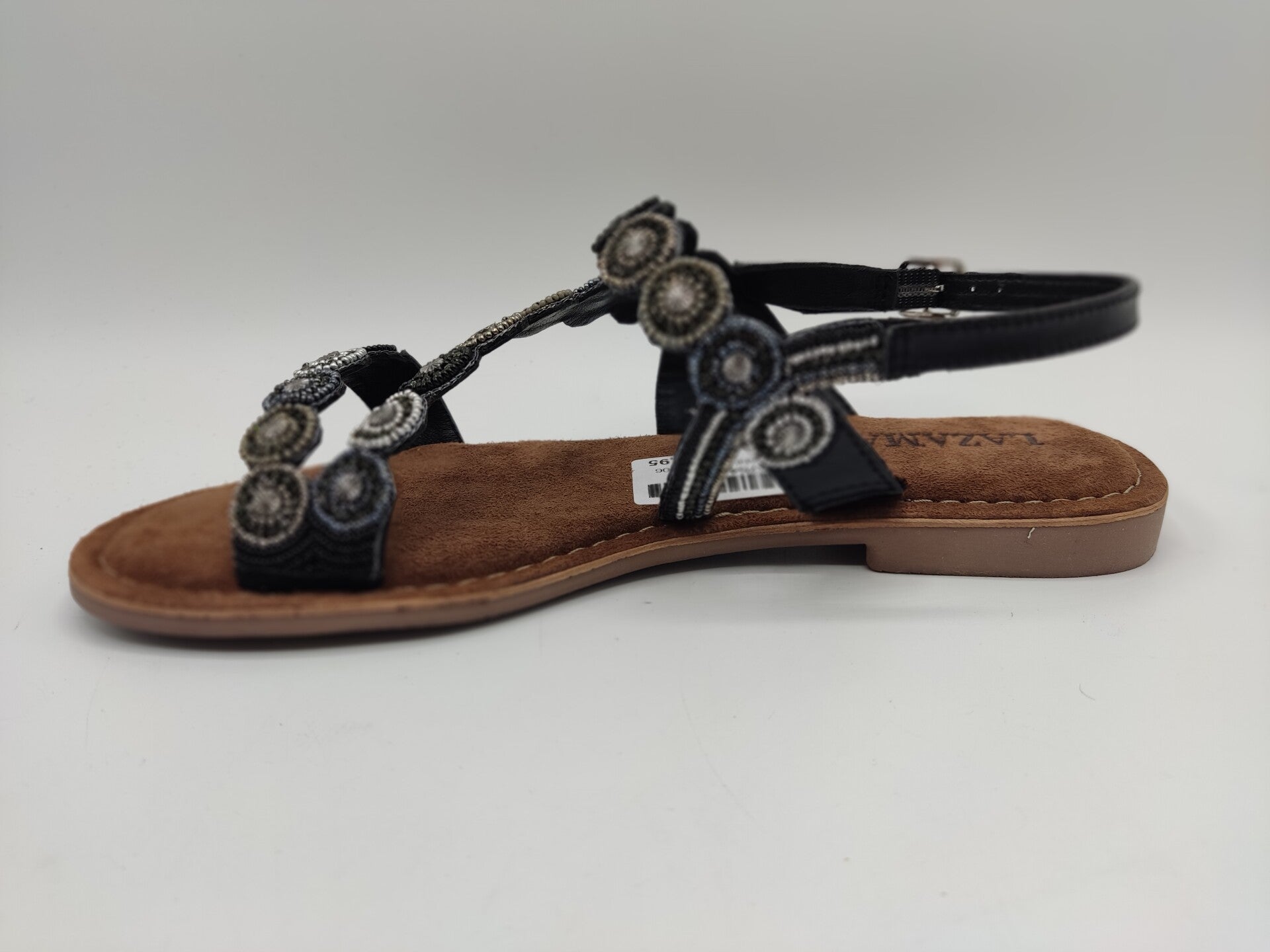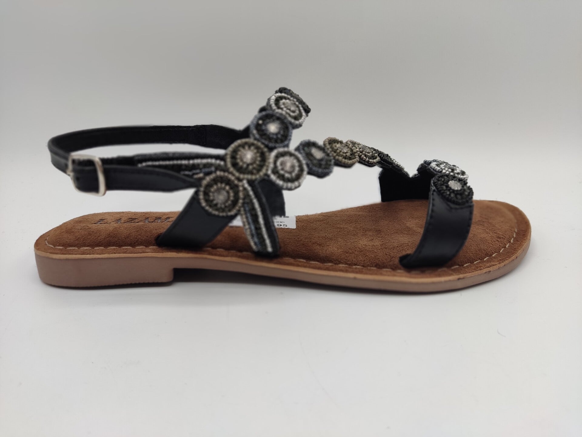 Mit bunten Perlen bestickte Sandale von Lazamani: